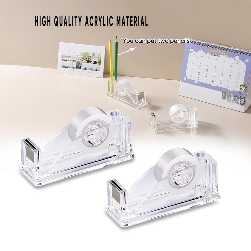 - XUENIN Tape Dispenser: Made From High-Quality Acrylic Material, Ensuring Its Durability And Sturdiness.Crystal Clear. It Features Two Compartments For Holding Two Pens, Making It Convenient For You To Access. Its Sleek And Modern Design Adds A Touch Of Elegance To Any Desk Or Workspace.