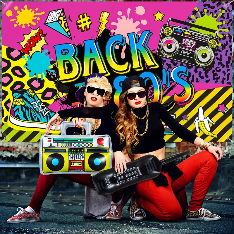 - Package Included: you will get 1 piece of 80's theme backdrop, 1 piece of inflatable radio, 1 piece of inflatable mobile phone and 30 pieces of latex balloons in 6 colors; Better to decorate your retro party and enhance the atmosphere with retro hip hop styles