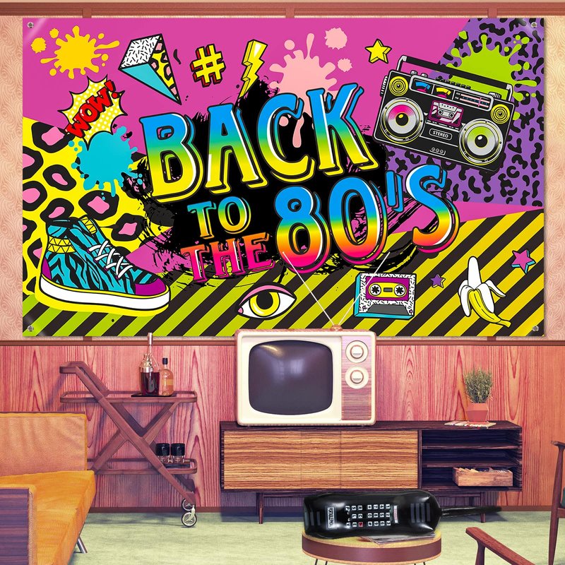 - Quality Material: the 80's party backdrop is made of quality polyester fabric, and the inflatable retro radio and mobile phone are made of aluminum foil material, lightweight and easy to carry; Colorful latex balloon arrangements will provide you with a more novel party atmosphere