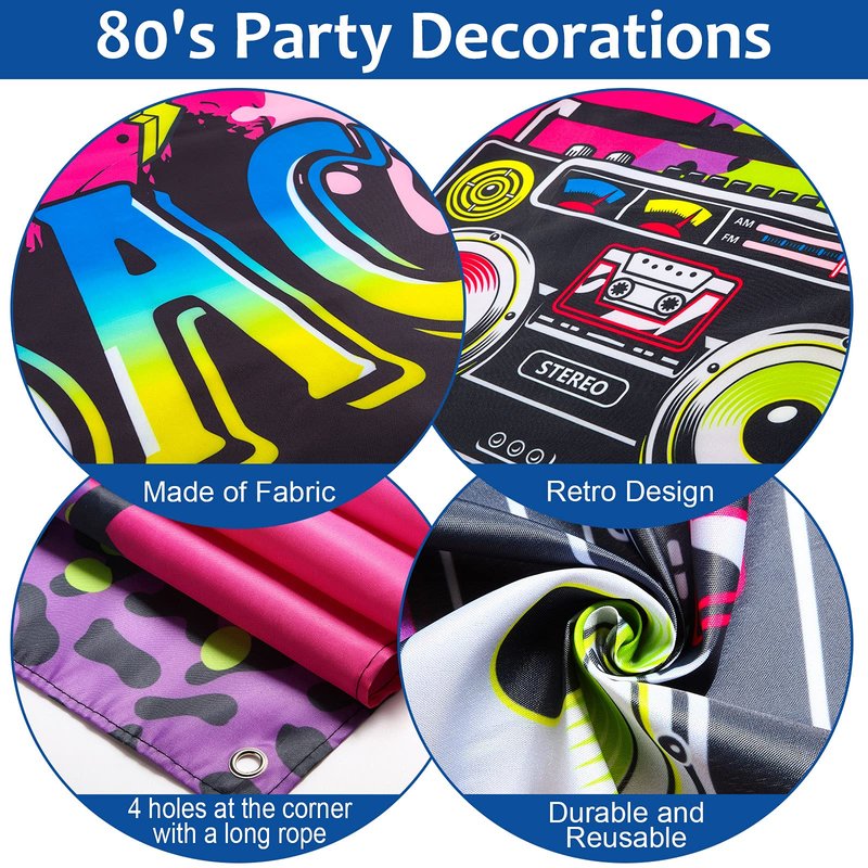 - 80s Theme Party Decor: our 80s party decoration features retro neon elements and bright color hip-hop prints, which will bring you to the day of the 80s and relive the warm memories of the 80s, and impress your friends or guests deeply