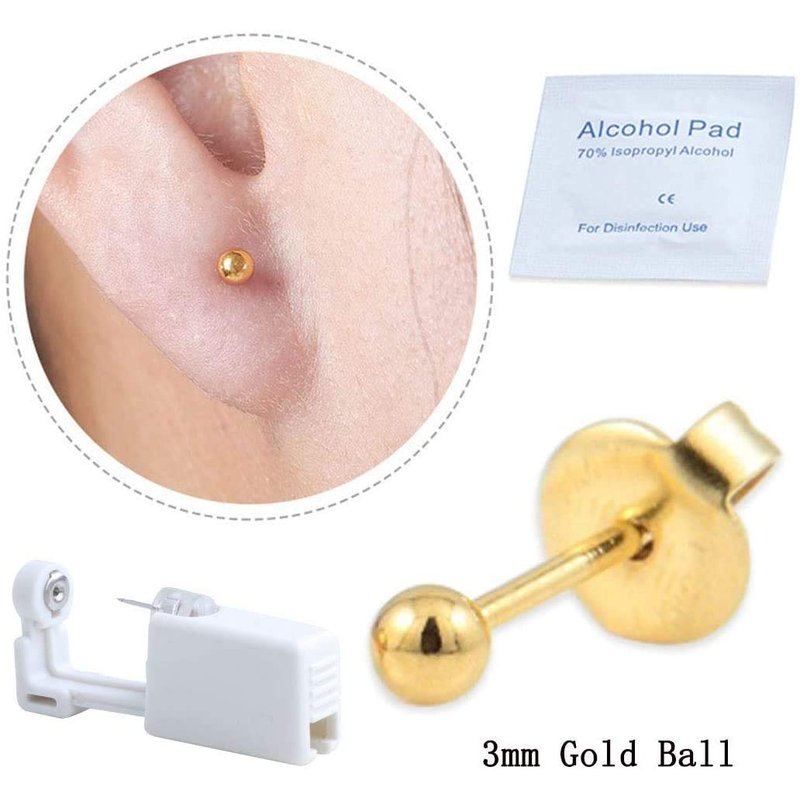 - Easy to Ues: Professional household ear piercing gun - Wash hands-Open package - Clean ear lobes with the provided a-lcohol swabs - Mark ear lobes - Aim, press, and done