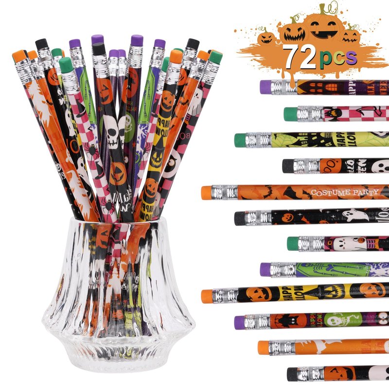 - 【Halloween Pencil Set】The Halloween pencil stationery set includes 72 colored pencils in 12 different designs, including Halloween elements such as pumpkins, bats, graves, witches, skulls, spiders, mummies and eyes. Enough quantity will meet your daily use and replacement。