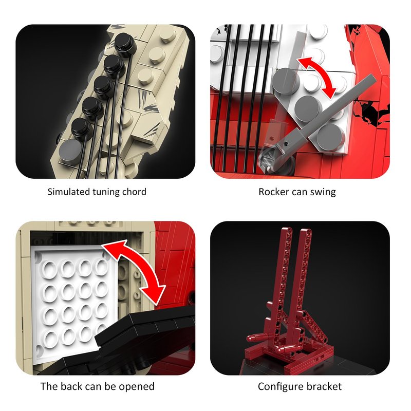 - BEST GIFT: Guitar blocks inspire imagination, provide endless building and play fun, and make a great holiday, birthday, or Christmas gift for MOC enthusiasts who enjoy building challenges, sports cars, and construction toys. Will provide an immersive assembly experience for music lovers.