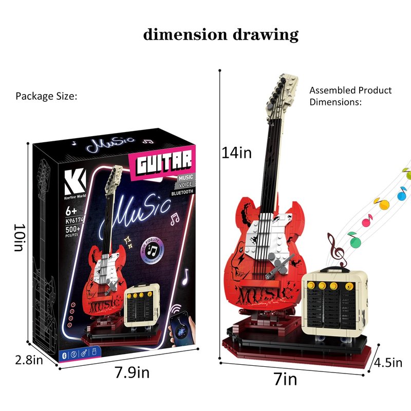 Building block guitar is the perfect combination of building blocks and guitar. Music lovers can understand the structure of guitar by splicing building blocks, and can bring more inspiration by practicing guitar with building block guitar.