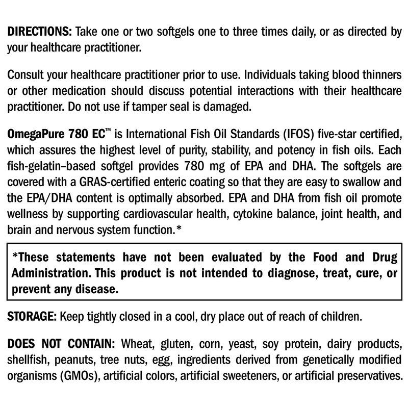 XYMOGEN OmegaPure 780 EC - Alaskan IFOS Five-Star Certified Omega 3 Fish Oil - EPA DHA Fish Oil Supplement- Supports Joint Health, Cardiovascular and Brain Health (120 Enteric-Coated Softgels)
