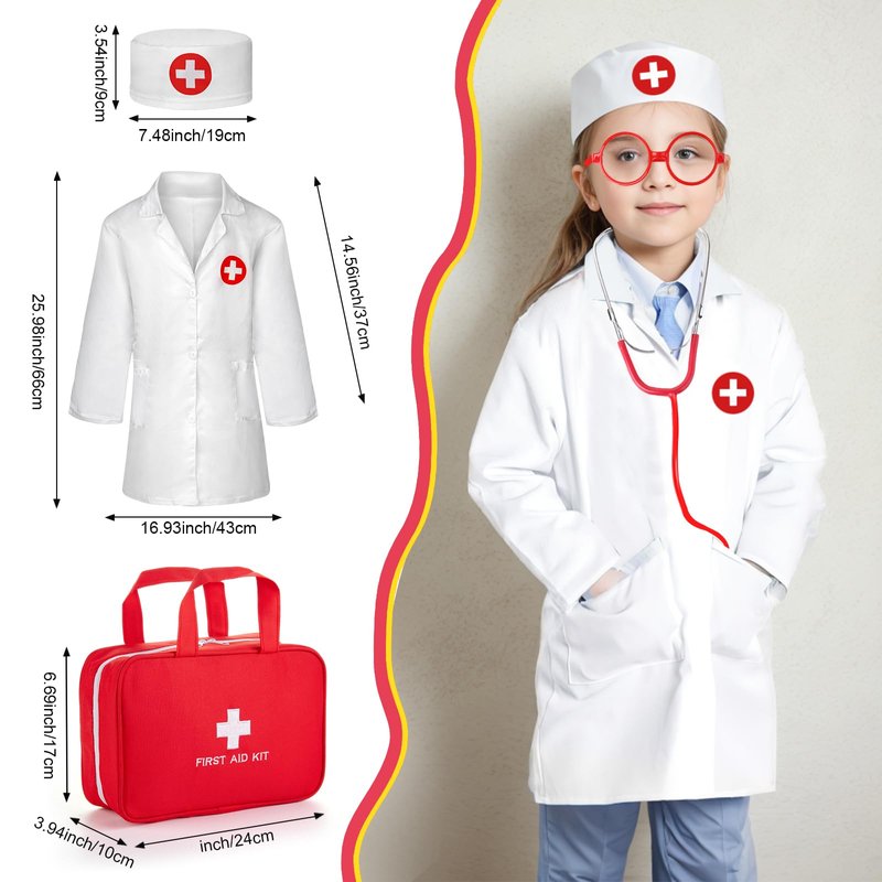 - EDUCATIONAL PRETEND PLAY: This kids doctor kit teaches kids about medical instruments and body parts, fostering imagination, empathy, and bravery while alleviating anxiety and fear related to doctor appointments. Kids can take on the role of a doctor, don a doctor's coat, and use a functional stethoscope to examine and treat their "patients." With immersive role-playing games, children will enjoy hours of fun.