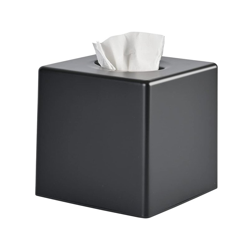 Y-in Hand Tissue Box Cover, Square Facial Tissue Holder Storage for Bathroom Vanity, Countertops, Dressers, Night Stand, Parlors and Offices - Black