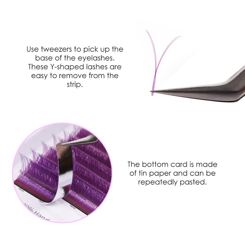 - Quick Easy Application: The alignment of the Y-shaped lash roots is clearly visible and the lashes are easy to pick up. Used in salons to help lash techs save more application time to serve more clients.