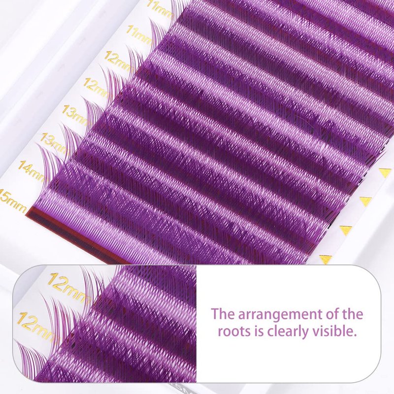 Specification of colored YY Eyelash Extensions Curl: C/ D Curl Thickness: 0.07 Mixed Length: 8-15mm mixed tray Color: Deep purple, light purple, dark blue, sky blue, dark brown Package Includes:12 Rows How to use colored yy Eyelash Extensions Use Eye Patches cover bottom eyelashes to prevent from lashes with other. Clean eyelashes with Lash Primer before the procedure. Drip 1-2 drops glue on lash tile. Use one tweezers separate the natural lash, another tweezers to hold the eyelash extension tip,and dip the end into the glue,then apply on the natural lash. Use Air blower to dry the glue. Apply coating sealant to keep lashes longer and comb the lashes to get the perfect appearance.