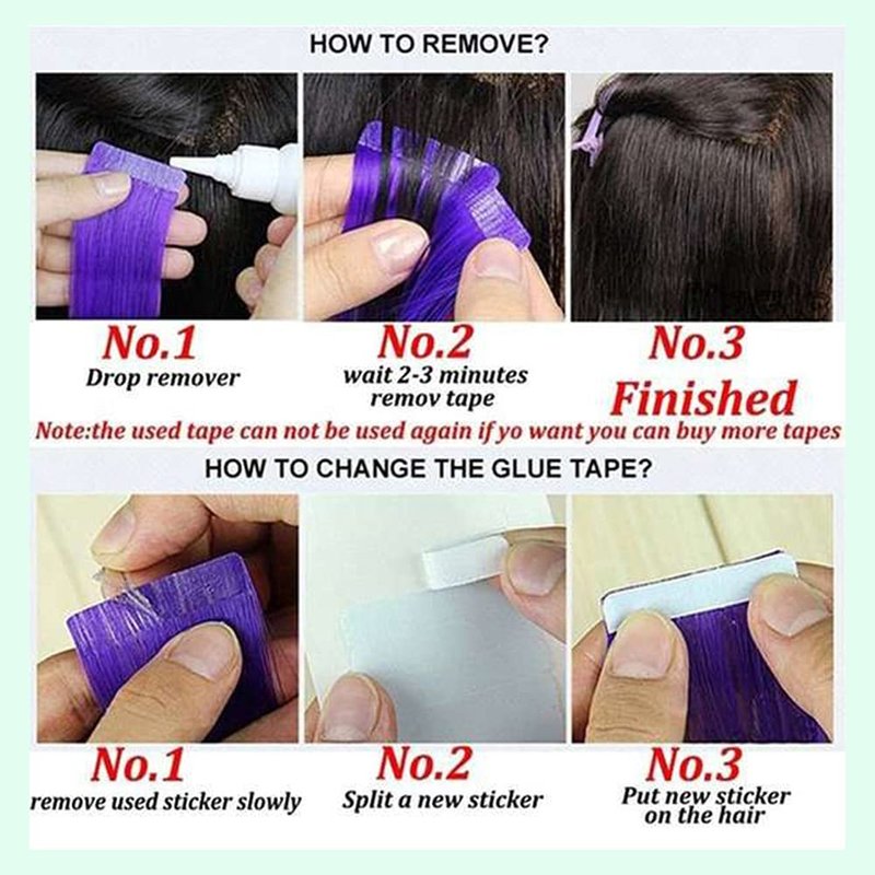 - Please understand that considering the different displayers and light environment, the pictures may have chromatic aberration with the real hair tape in extensions.