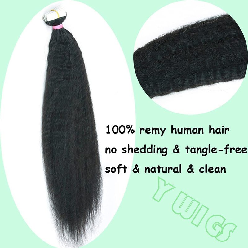 Y WIGS Tape In Hair Extensions Human Hair Kinky Straight Remy Hair 40pcs 80g Natural Color Real Human Hair Tape In Extensions 12inch