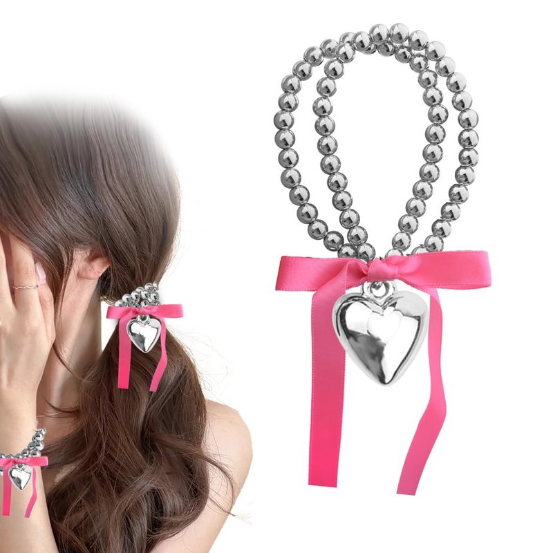 - 【Sweet Hair Accessories Decorations for Women Girls】:This y2k ponytail holders for women girls have cute design, hair bow ties long silk ribbon with heart hair tie adds sweet and romantic atmosphere in this beaded hair ties, this pink long ribber bow hair ties can help you easily handle any hairstyle, whether for short curly hair accessories, or natural hair accessories, both are suitable for cute women hair accessories