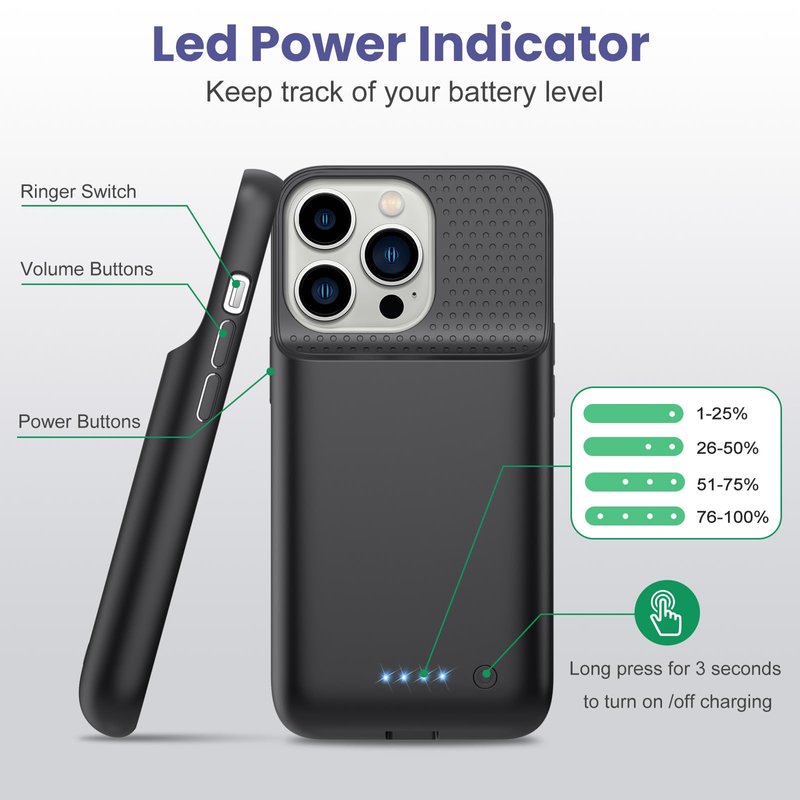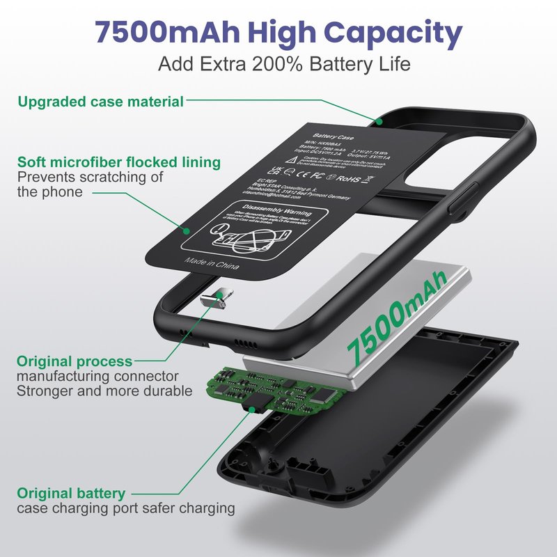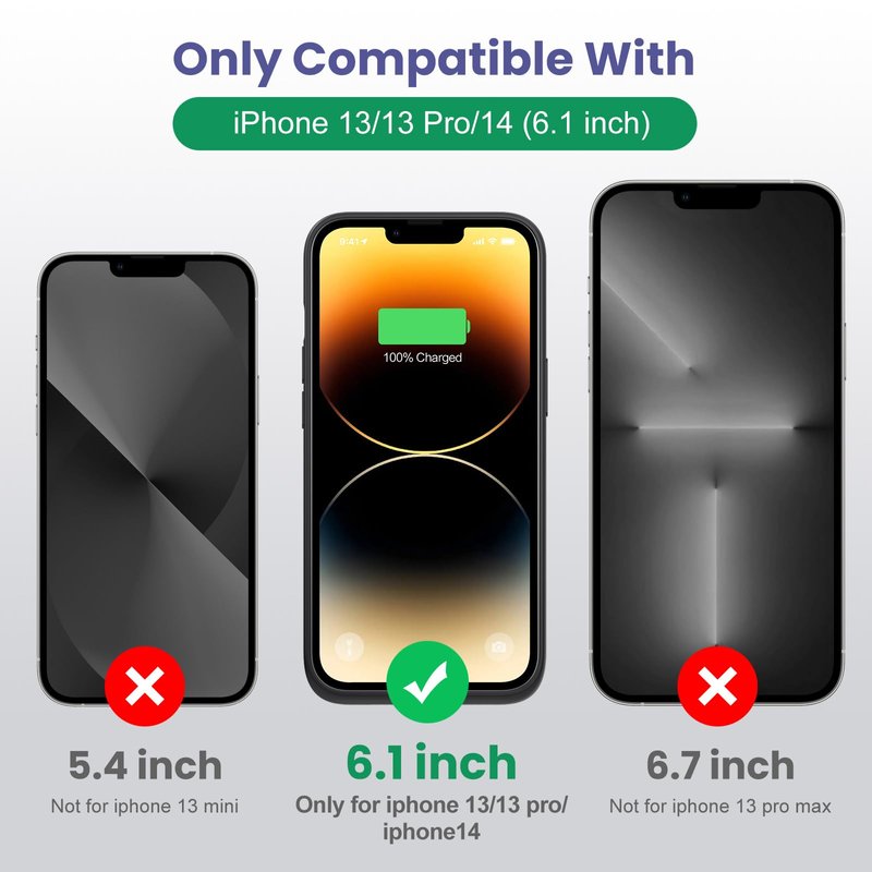 Yacikos Battery Case for iPhone 13/13Pro/14,7500mah Ultra-Slim Protective Charging Case, Portable Rechargeable Expandable Battery Charger Cover Compatible with iPhone 13/13Pro/14 (6.1 Inch)-Black