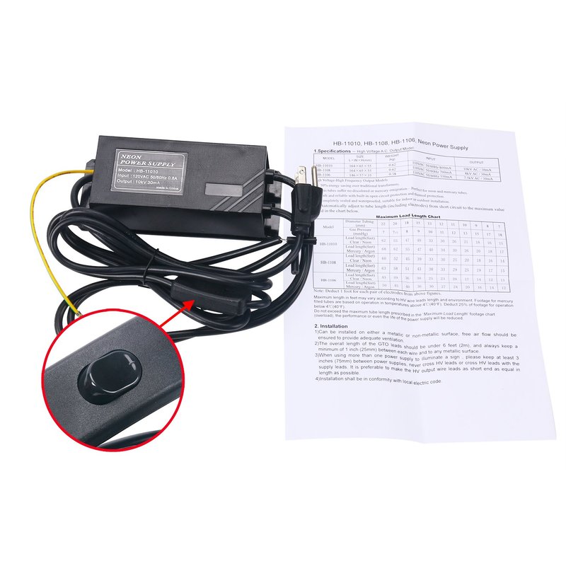 YaeCCC 10KV 30mA Power Supply for Glass Neon Sign Electronic Neon Light Transformer 120V AC 50Hz/60Hz