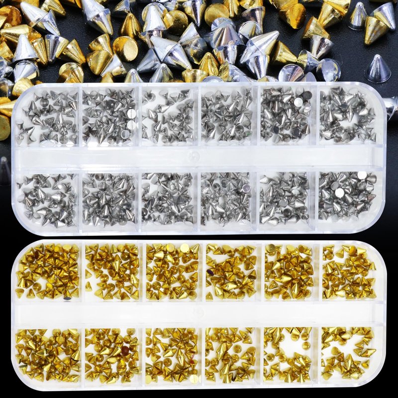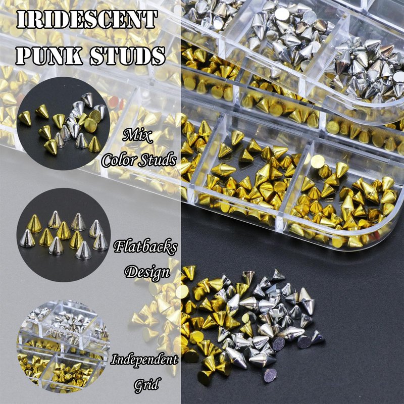 - Cone Nail Charms - With built-in flatbacks design,will be covered on surface with water-proof coating,whether you are a nail art beginner or a professional, you can easily use these metal spikes nail art decorations to decorate your nails