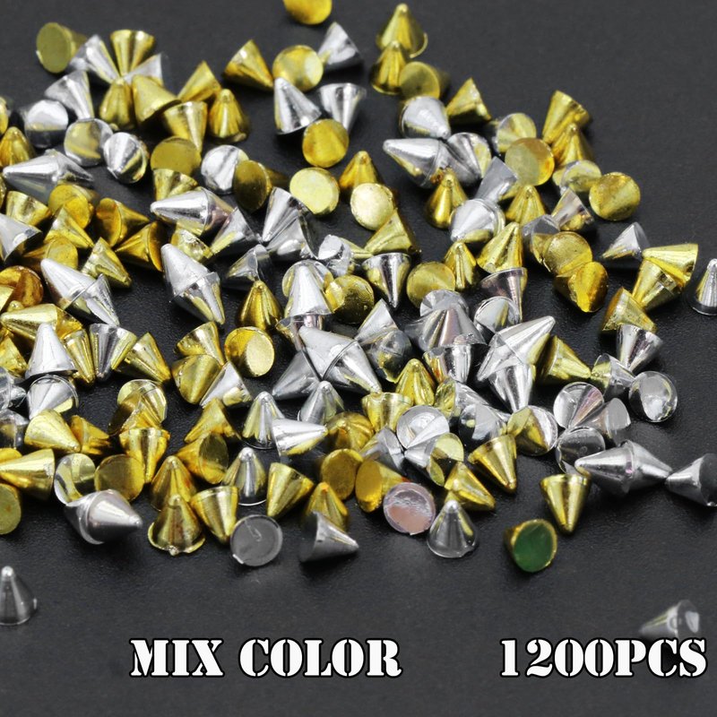 YAEISM 1200PCS Metal Rivet Punk Nail Charms 2Box Cone Metalic Spike Studs for Gothic Nail Art Silver and Gold Alloy Nail Studs for DIY Crafts Decoration