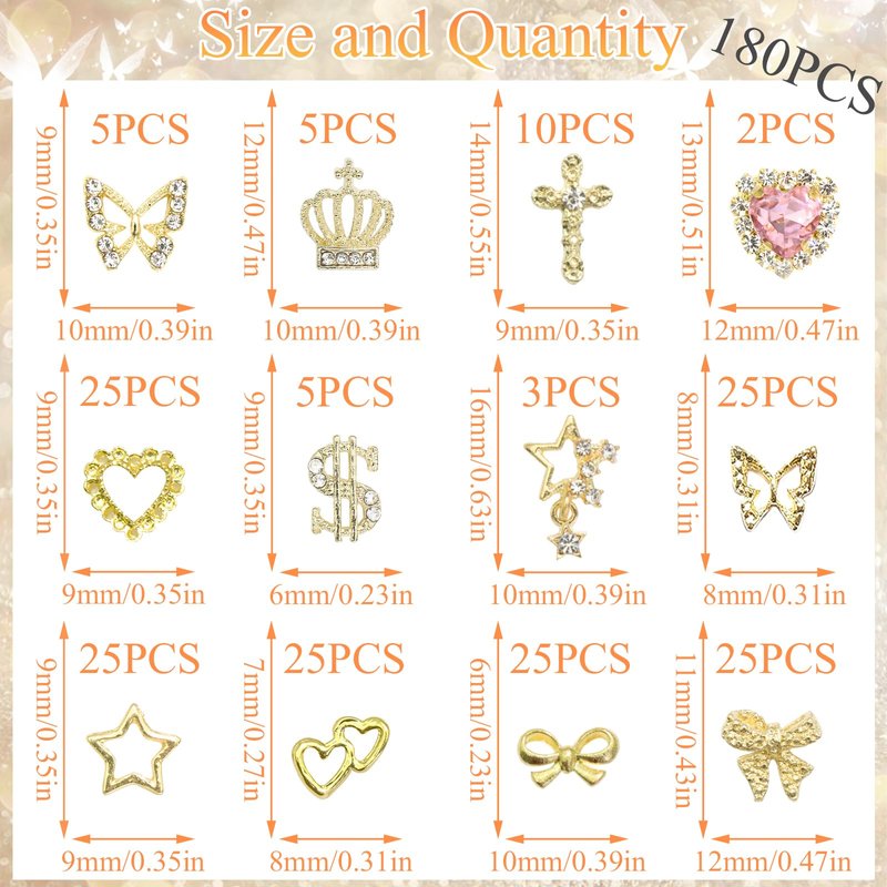 - Many Types for Choice - These 3D gold nail charms cross have 12 different shapes about 180pcs,so many shapes and enough quantity for your choice, to fully meet your daily manicure needs