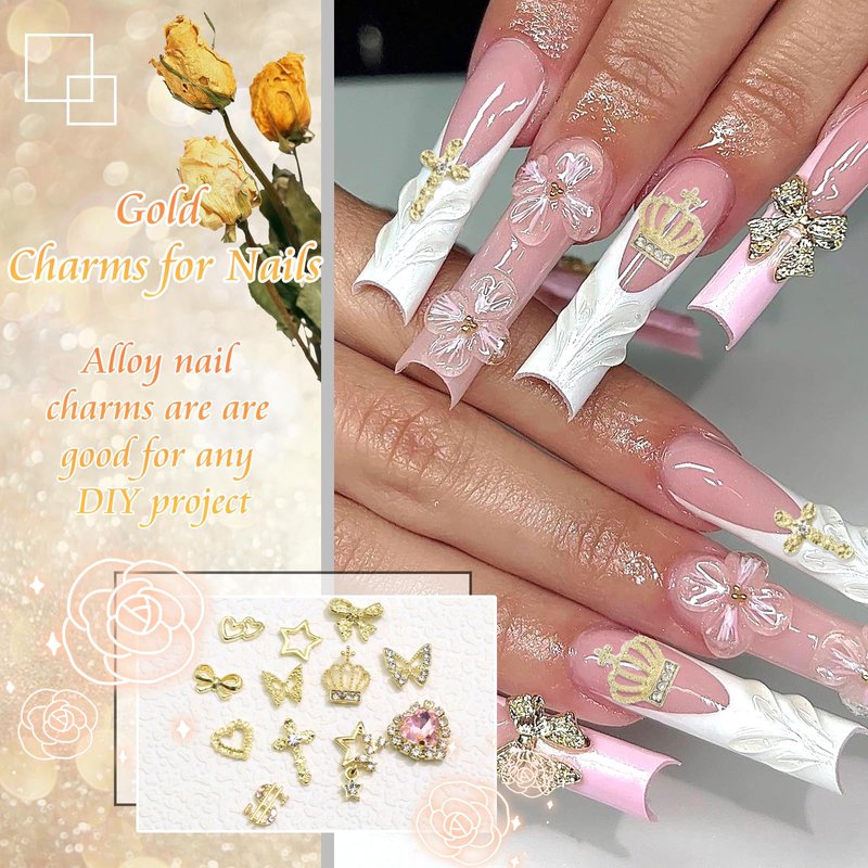 - Perfect Gift - Nail charms gold is the best gifts for your wife, girlfriend, mother, or friends. You can give them manicures on important days such as anniversaries, celebrations, Valentine's Day, weddings, engagements and Christmas, which can express your love for them very well