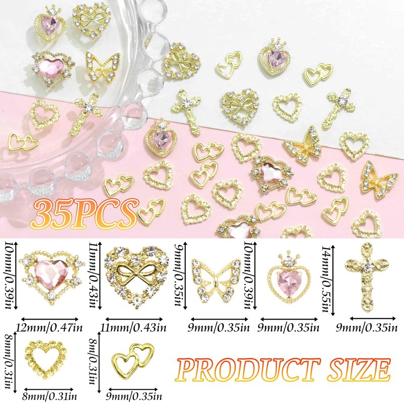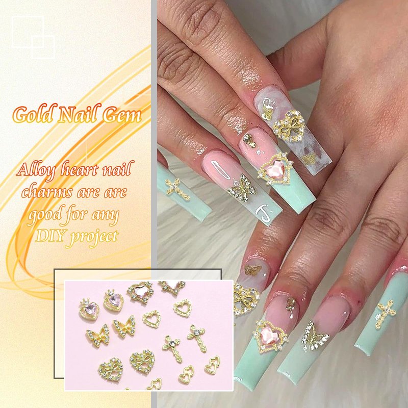 - Package Contain - You will get about 35pcs gold charms for nails with 7 shapes. Including heart,cross and butterfly.Enough to meet your daily nail art needs