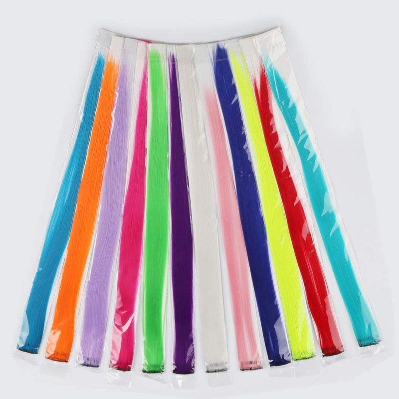 - 12 Beautiful Color Combinations: This hair extensions kit contains 12 different colors of hairpieces. Including Orange, Sky Blue, light purple, rose red, Grass Green, Deep Purple, White, Peacock Blue, Fluorescent Green, Red, Royal Blue, and Pink. You can match different colored hairpieces together. Ideal gift choice for family and friends.