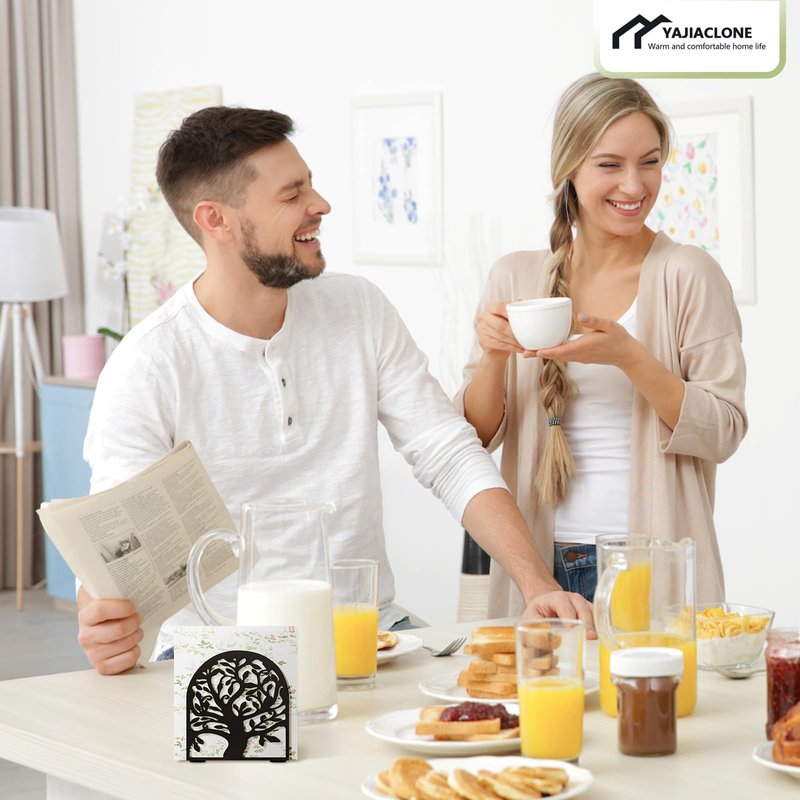 YAJIACLONE Tree of Life Black Metal Napkin Holder for Table,Stocking Stuffers for Adults Men,Christmas Gifts for Women,Napkin Holders for Paper Napkins with Sturdy & Quality Material, Cushioned Base.
