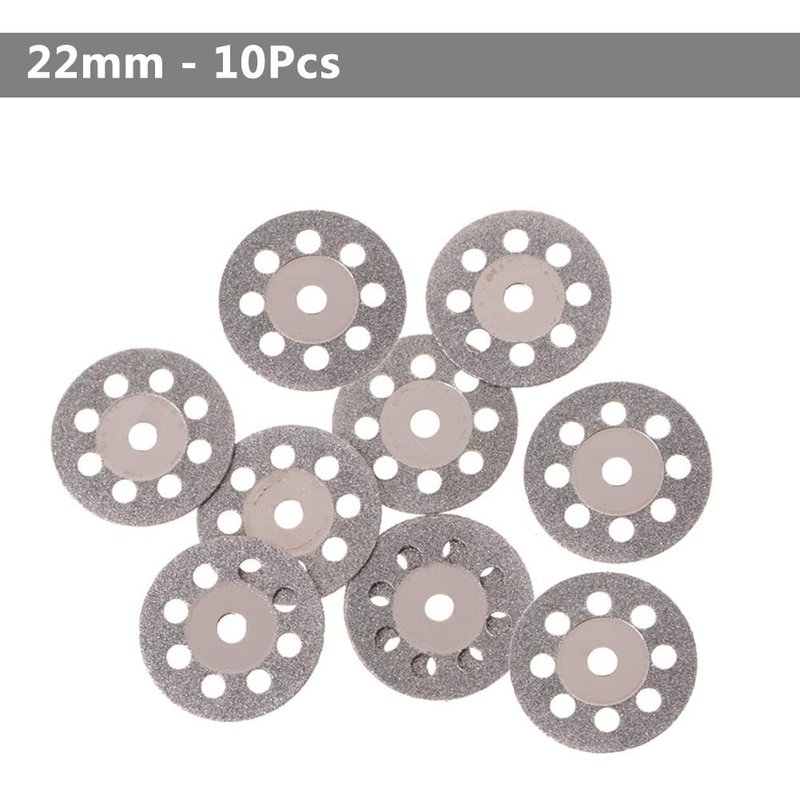 - Total 20Pcs Diamond Cutting Wheel with Holes, Cutting Diameter: 22mm(7/8", 10Pcs) + 25mm(1", 10Pcs), Thickness: 0.6mm, Mandrel Diameter: 3.0mm (4Pcs)