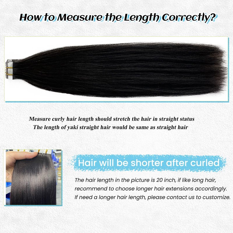 - 【10A Grade Yaki Straight Tape in Hair Extensions】10A unprocessed raw human hair extensions, soft and bouncy, no split ends. Yaki straight tape in hair extensions human hair for black women to add hair length and volume. Human hair tape in extensions is easy to be installed and removed, the tape is very thin and light, without pressure, it could be attached to your scalp without any discomfort or injury. Yaki remy hair extension can be cut, washed, dyed, straighten and curled.