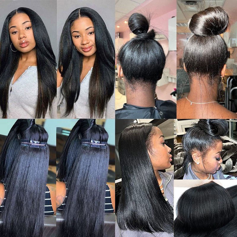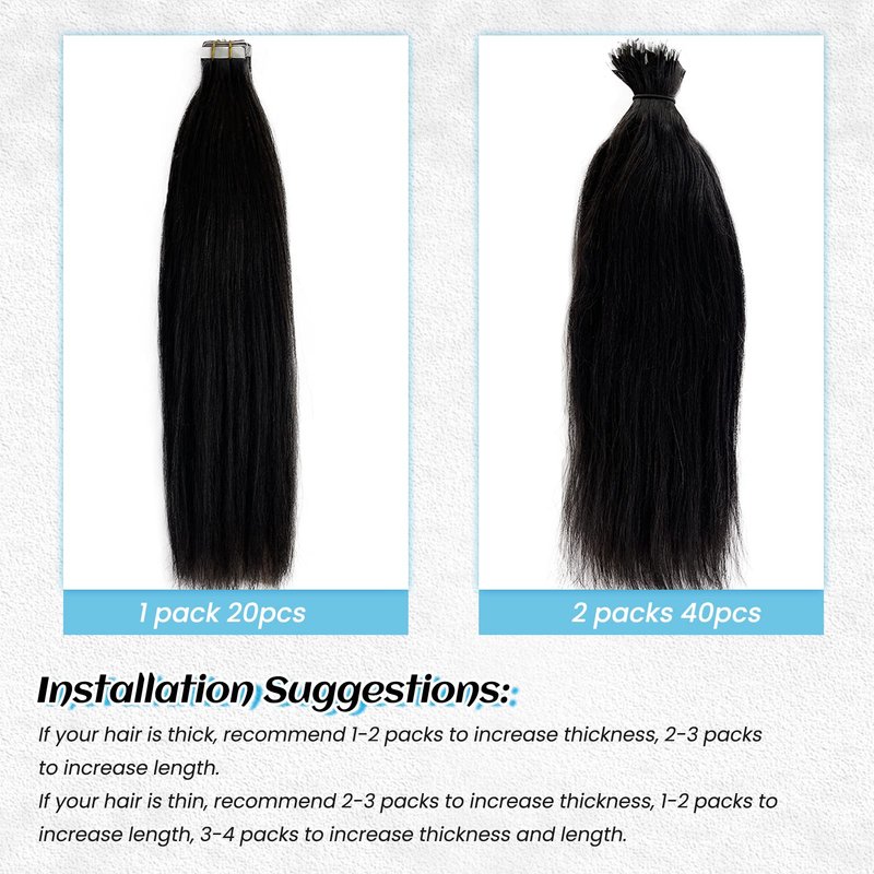 - 【High Quality Human Hair Extensions】Benafee hair extensions tape in human hair is no shedding, no tangles, smooth and soft, healthy and no split ends. 10A grade Brazilian virgin human hair could keep the yaki straight texture same from top to bottom. The color of natural black hair extensions is slightly brownish, could match with your own black hair better. You could dye it if like other colors, recommend try a strand of hair before dyeing whole hair, or go to a professional hair salon.