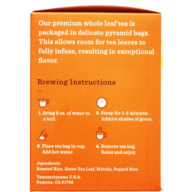 - PURVEYORS OF JAPANESE GREEN TEA: Yamamotoyama has been a purveyor of the highest quality green tea for over 330 years; Matcha Genmai Pyramid Green Tea has a rich history in Japan as a comforting tea to enjoy with family and friends; Roasted rice is added to fresh green steamed tea leaves, resulting in a distinct toasty flavor