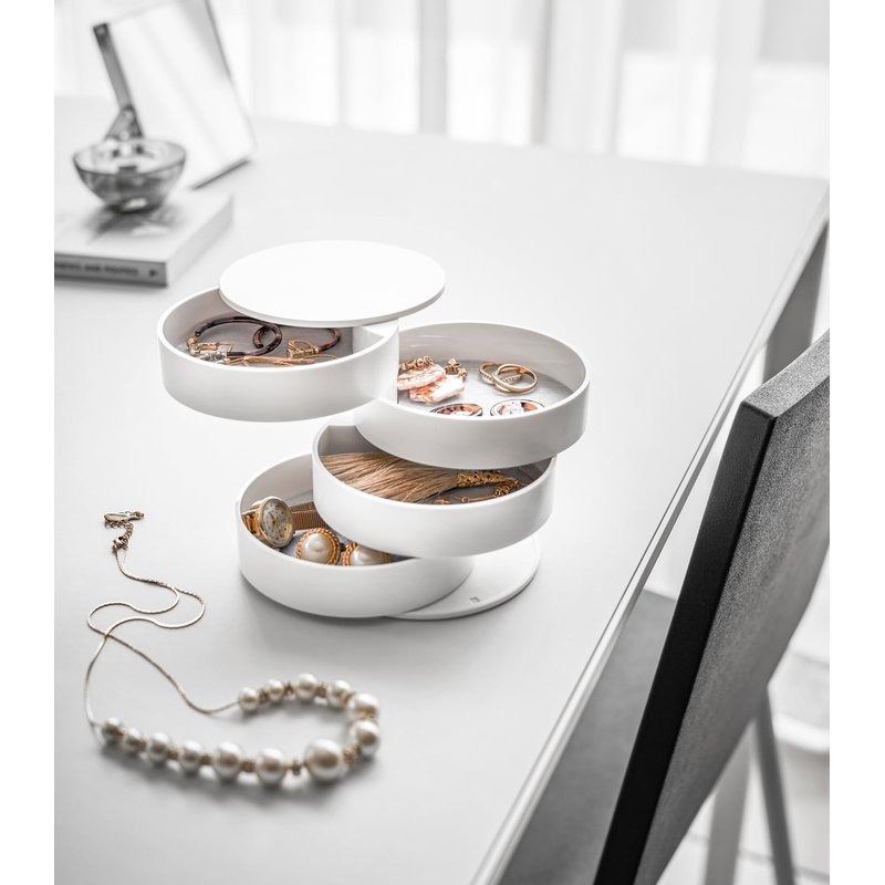 Yamazaki Home Secti Oned Jewelry Organizer Nail Art Supplies Earring Accessories Storage Holder Rotating Display ABS Plastic One Size White