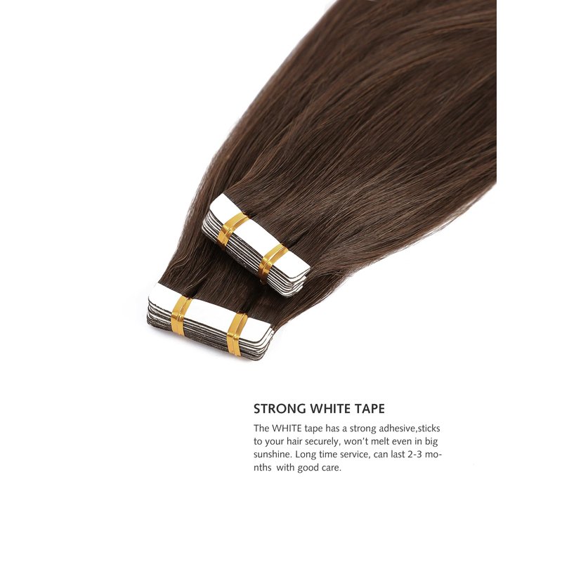 - 【STRONG TAPE & EASY TO USE】--The hair extension tape uses WHITE tape which has a strong adhesive to ensure a long time use. The tape can stick to your hair securely and last 2-3 months with good care. Just stick it on and it can be done once and for all without putting in and taking off. It won't fall out even you wash and comb your hair frequently. Also, the hair can be reused with replace tape which comes with 10 additional tapes for each package as a backup.