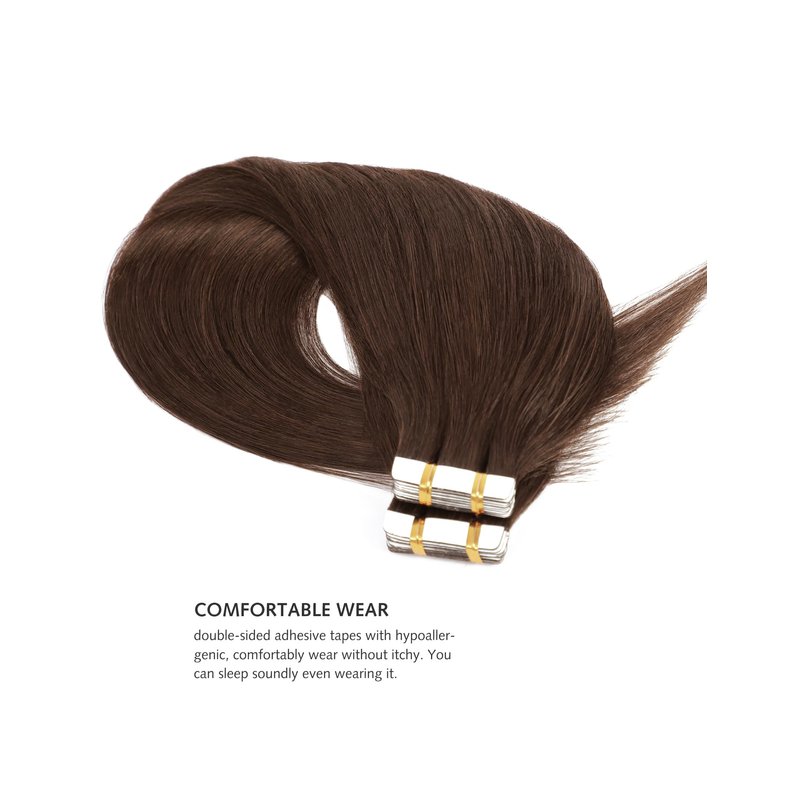 - 【COMFORTABLE WEAR】--The human hair extensions uses hypoallergenic adhesive double-sided tapes to ensure you can wear it comfortably without itchy. So you can sleep comfortably even wearing it. Real human hair is light-weight, so you won't feel too heavy even if you wear a full head. You can wash your hair as usual without any pain or discomfort.