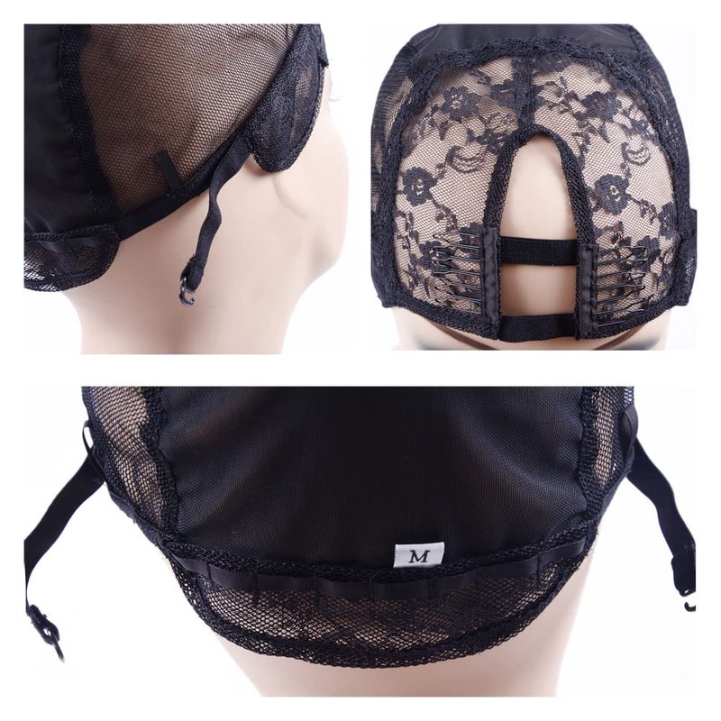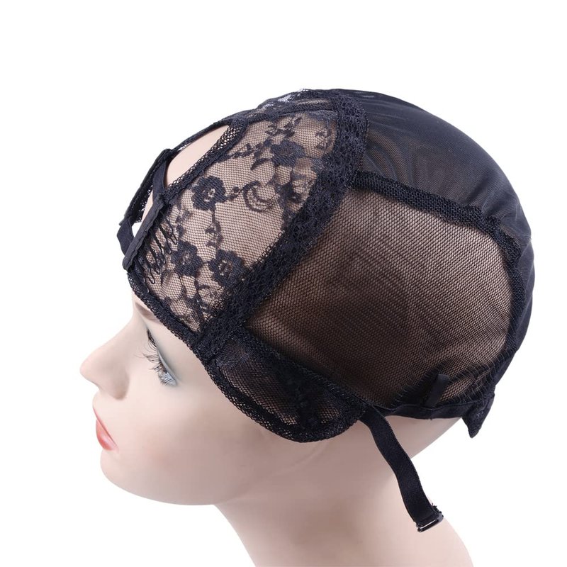 YANTAISIYU 1Pc U Part Wig Cap Weaving Wig Cap with Elastic Band and 2 Hair Clips Front for Wig Making Hair Extensions Weft DIY (Black M)