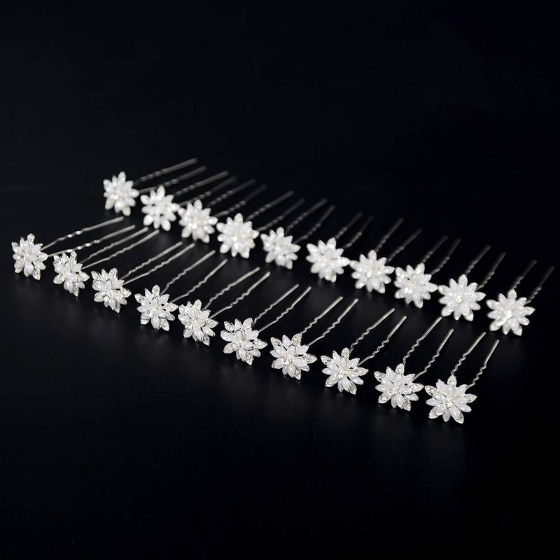 yantu Women's Floral Hair Pins with Crystal for Wedding Pack of 20 White