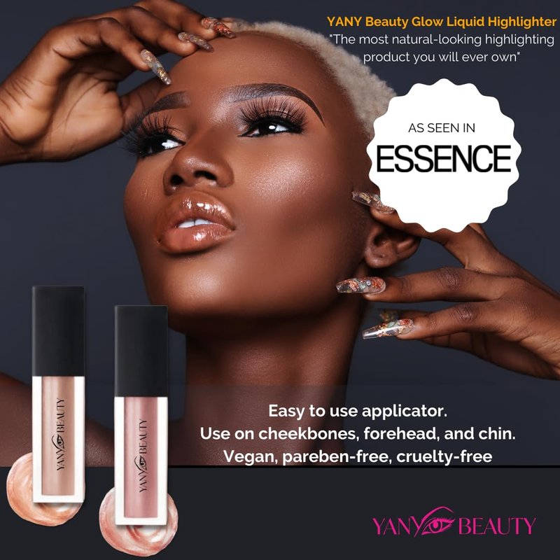 Elevate your beauty routine with YANY Beauty's Glow Liquid Highlighter. This versatile and easy-to-use highlighter provides a natural, radiant glow that enhances your features without overpowering your look. Available in two flattering shades, rose and gold-tone, this liquid highlighter is perfect for all skin tones. Experience the magic of a cruelty-free, vegan, and paraben-free formula that leaves your skin feeling soft and hydrated. See why this highlighter is award-winning and seen in Essence Magazine.
