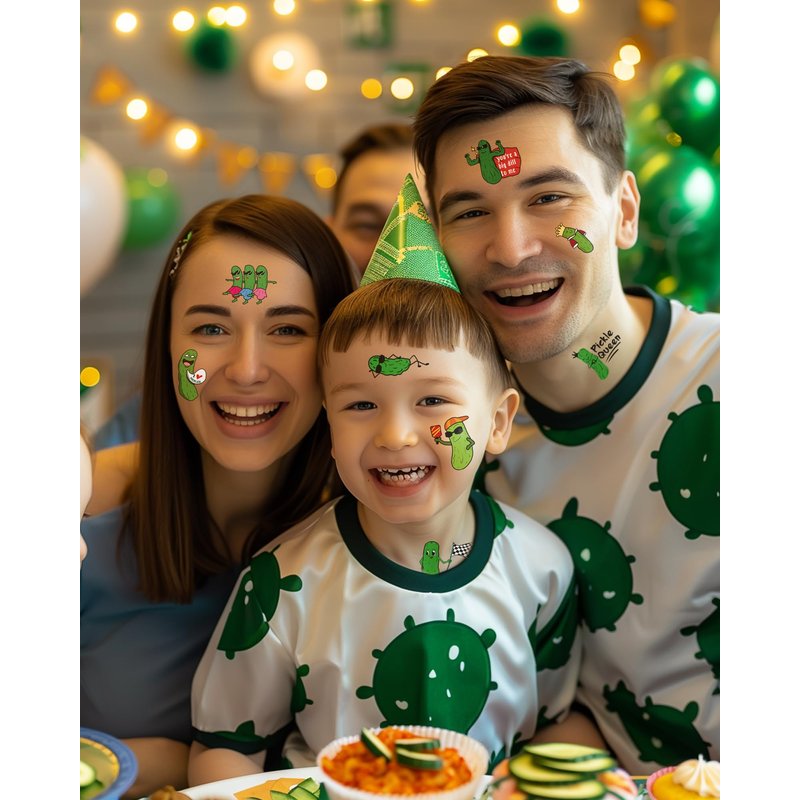 - Funny Temporary Tattoos: Included in this pack are cool temporary tattoos with pickle designs. These are a fun and quirky way to show your love for pickles. Great for kids and adults alike, these tattoos are an excellent addition to any pickle party.