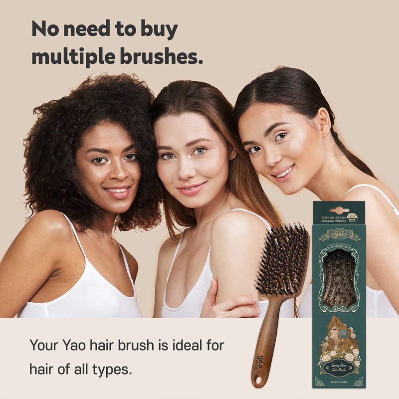 - π¨βπ©βπ¦ FOR ALL DRY HAIR TYPES β Whether you have thin or thick hair, Yao Boar Hair Brush will make styling easy and enjoyable every time! Its unique shape (not too big!) makes it super easy to brush hairs for hours.