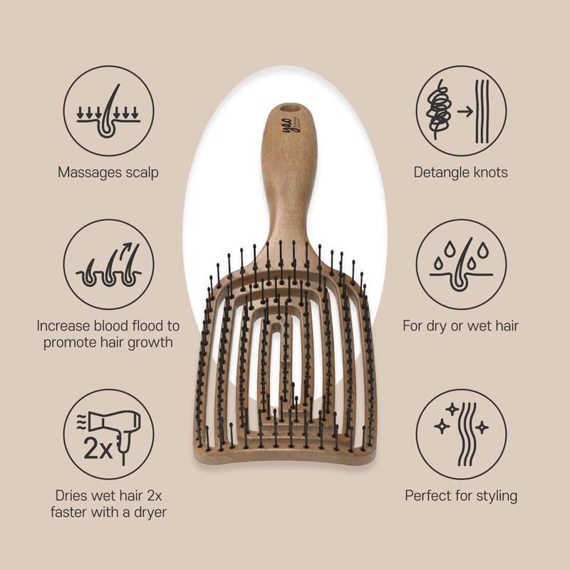- 💆 Massage & Manage – Elevate your hair’s appearance, brush by brush. Your anti-static, curved, no tangle hair brush helps distribute natural oils and increase blood circulation for healthy-looking locks.