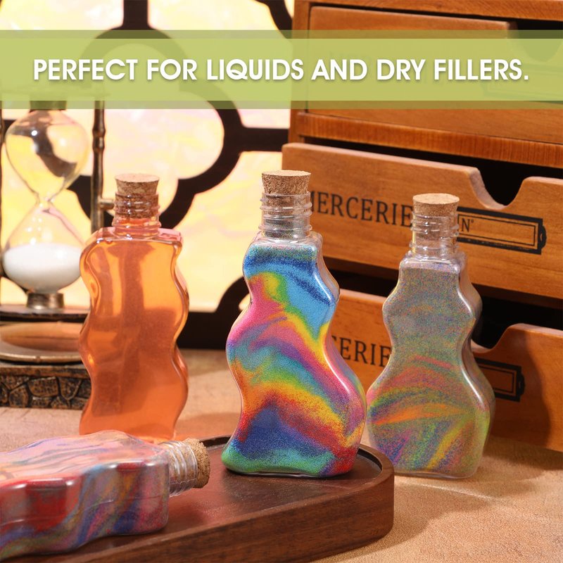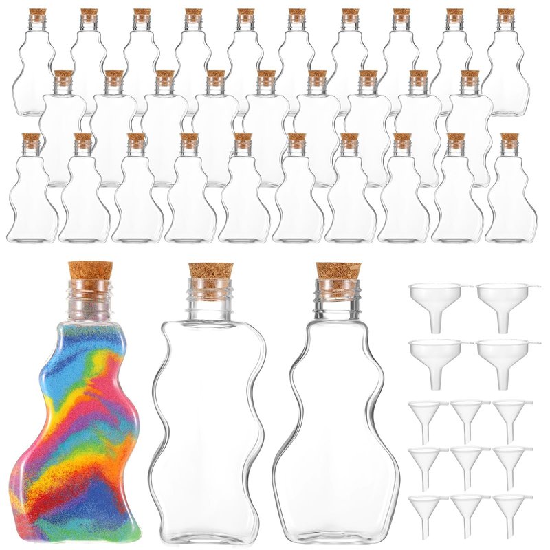 - Multiple Applications: sand art sand bottles can not only be applied as sand art bottles, but also crafts bottles, allowing you to fill them with acrylic rocks, sand, gems, dried flower petals, ribbons, candies, jewelry, small notes and so on
