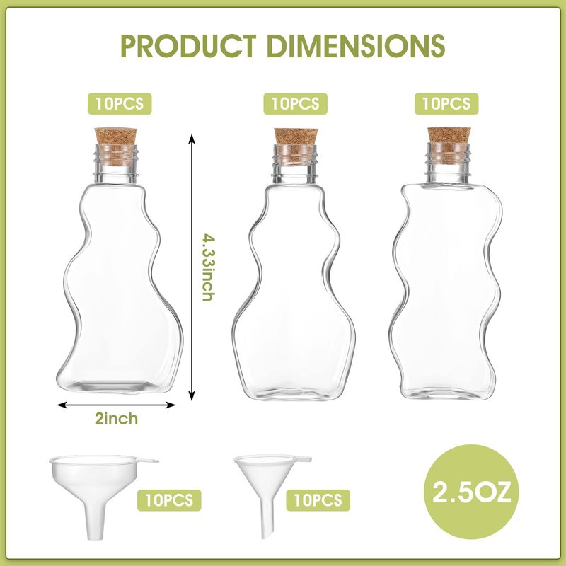 - What You Can Receive: you will receive 30 pieces of mini plastic bottles for sand art in 3 different shapes, and each style comes with 10 pieces, with 10 large funnels and 10 small funnels, enough to support your DIY project needs