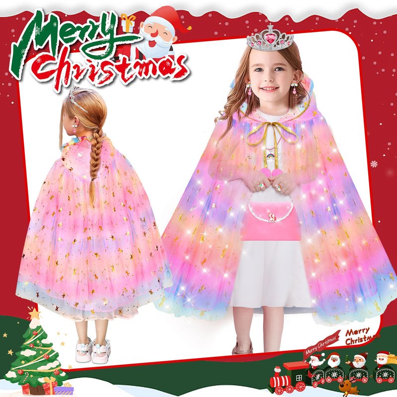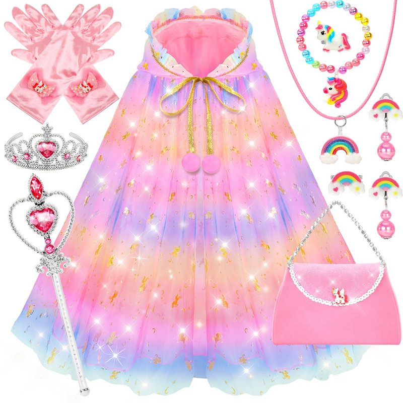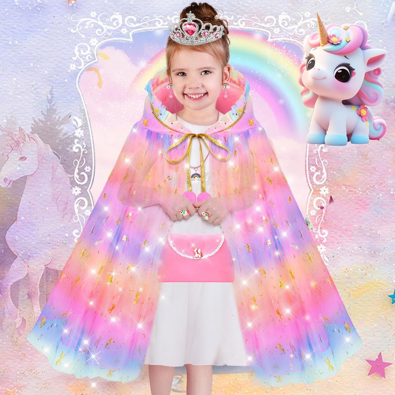 - Princess Dress Up for 3 4 5 6 Year Old Girls Birthday Christmas Gifts-Magical rainbow princess dress up cape set for girls 4-6 role play, pretend play, cosplay, girls dress up, unicorn theme party, girls party, princess party, dress up party, birthday party, Christmas party, holiday celebrations. Make every little girl's dream come true with our unicorn toys for girls. Perfect Birthday gifts, Halloween gifts, Christmas gifts.Illuminate her fairy tale dream in charming unicorn personalized dress