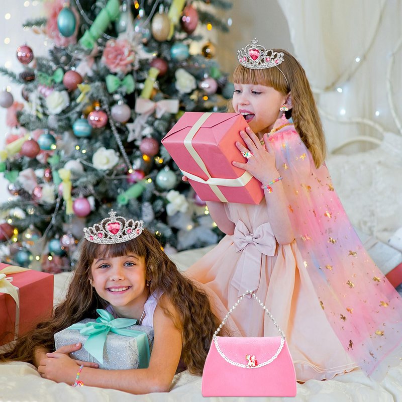 - Princess Dress Up for Girls 4-6-Your princess be the focus in crowd with YAOOBEY luxury princess dresses for girls. A beautiful cape adorned with golden stars, a sparkling tiara, princess gloves, a magical wand, a little play purse along with matching jewelry pieces like ear clips, a necklace, princess rings and a bracelet. Perfect princess costume for imaginative play, toddler girl Halloween costume is designed to bring a touch of magic to any special event, unicorn toys for girls age 4-6