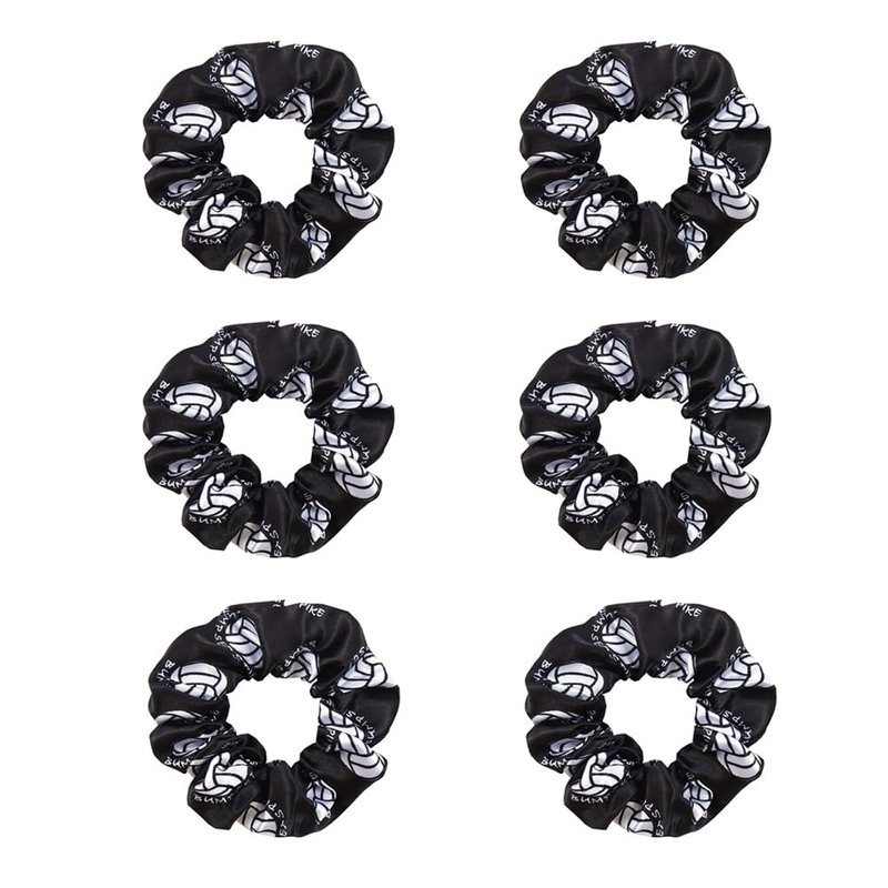 Yaphetss 6Pcs Silk Satin Hair Scrunchies Volleyball Sport Hair Ties Elastic Bands Ponytail Holders Hairband Scrunchy Hair Accessories for Women Girls Player Team Wristband Decoration, Black