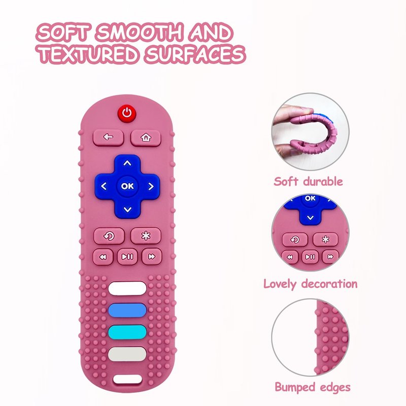 - Sensory Baby Teethers: The remote control shape teething toy features various shapes of bump keys, which can massage the gums, effectively relieve discomfort such as baby's gum itching, exercise the baby's chewing ability and bite ability. Bright, vibrant colors will grab your baby's attention. The graphics on the back can help your baby learn shapes, and it can also be used as candy, chocolate, Ice Cube mold.