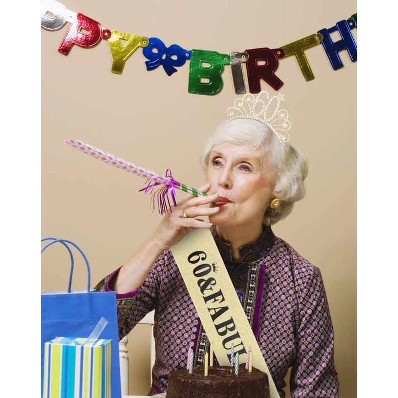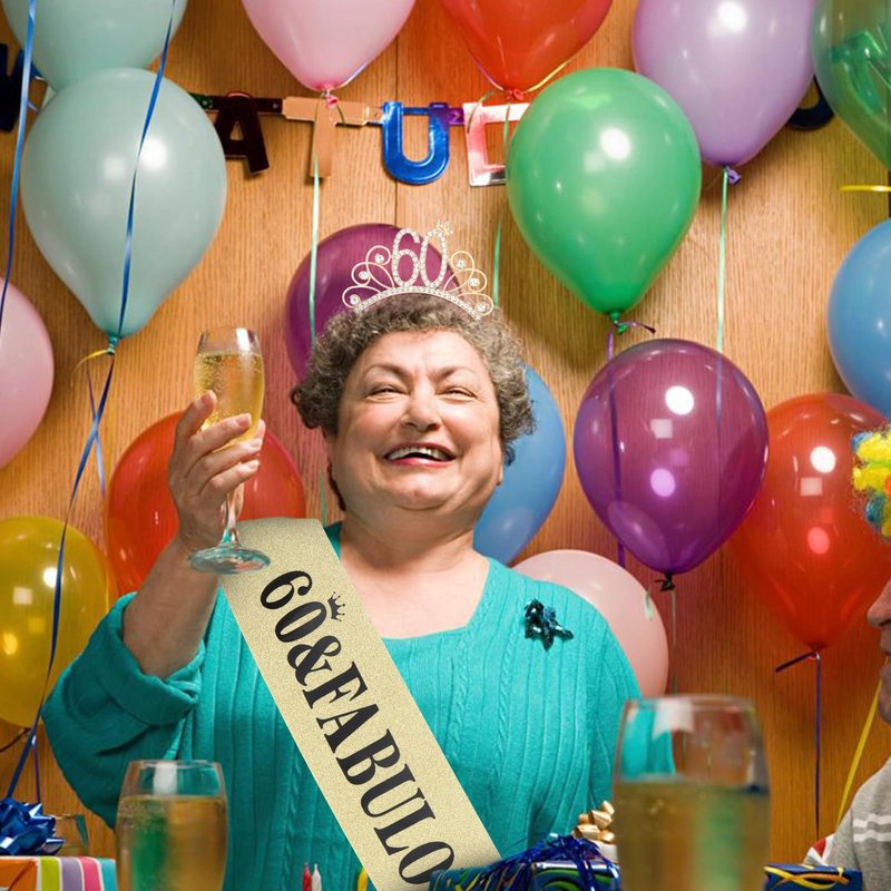 - 60 & Fabulous Birthday Sash: The birthday sash is made of soft, glittery fabric with hot foil stamping to match any outfit. The sash comes with a cute and durable pearl pin to adjust the sash to your needs, which will hold the delicate crown securely on your head, making it easy to wear for most body types. Our sparkling sashe fits everyone!