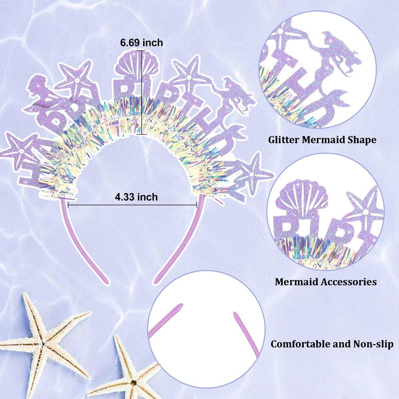 - One Size Fits Most: Come radiate glamour with this mermaid hairband! This mermaid tiara comes in a universal size, all can wear this beautiful mermaid tiara at the party, go ahead and have a fun party!