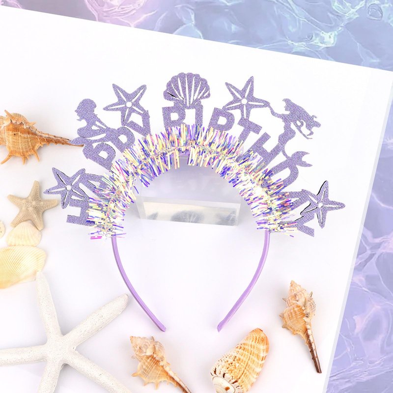 YARIEW Mermaid Headband for Women, Mermaid Birthday Headband for Hair Accessories, Mermaid Tail Starfish for Mermaid Costume Mermaid Party Decorations Gifts Purple