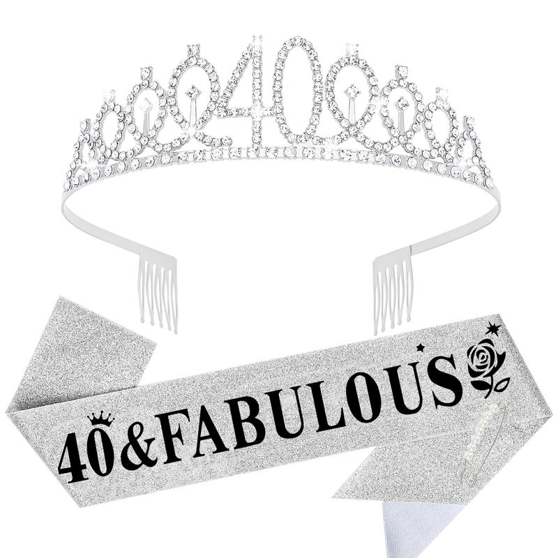 - Perfect for Birthday Party Set: "40 & Fabulous" silver satin sash and a silver rhinestone crown with a beautiful pearl pin. When worn, the Queen's temperament is immediately apparent and the crowd will be dazzled.