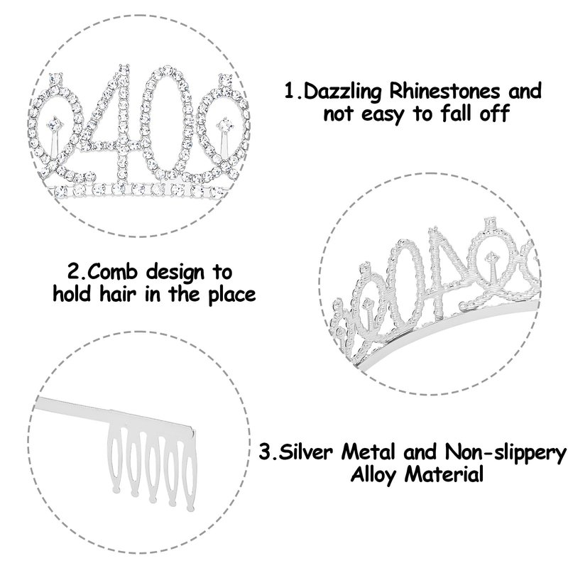 - 40th Birthday Sash: The birthday sash is made of soft, glittery fabric with hot foil stamping to match any outfit. The sash comes with a cute and durable pearl pin to adjust the sash to your needs, which will hold the delicate crown securely on your head, making it easy to wear for most body types. Our sparkling sashe fits everyone!