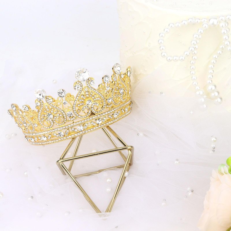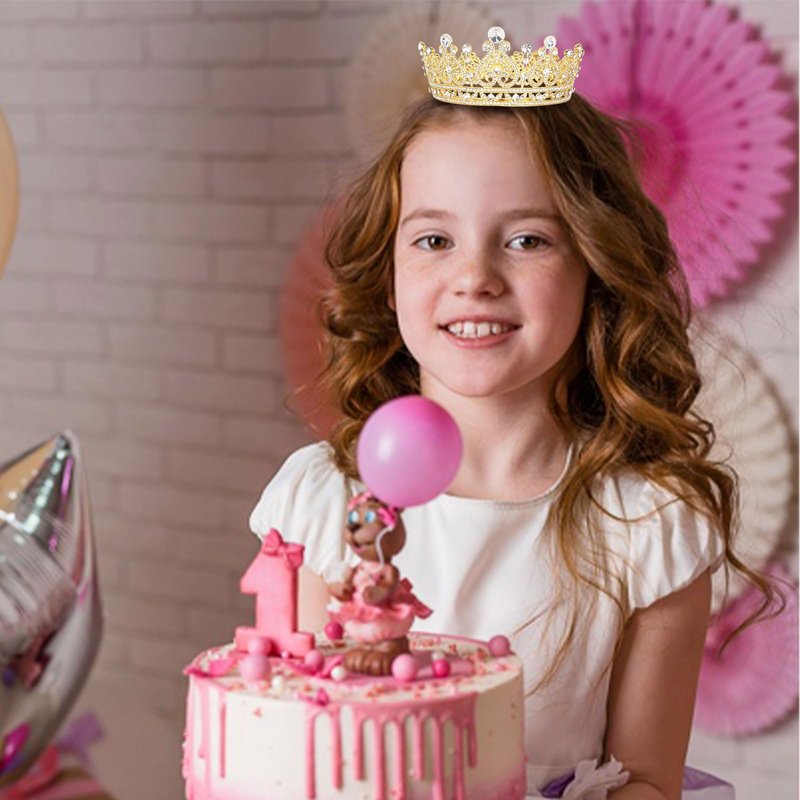 YARIEW Small Gold Crystal Crown for Little Girls Flower Bouquets Accessories Rhinestones Wedding Cake Topper Birthday Crown for Kids Cake Decorations